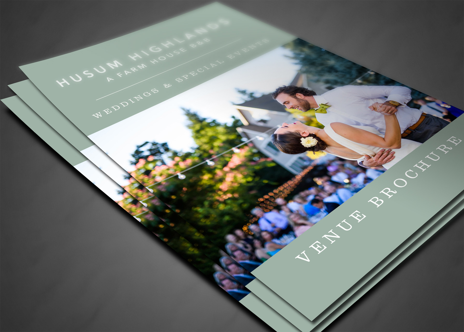 I designed a 16 page wedding brochure for Husum Highlands Bed & Breakfast to showcase their wedding venue. This brochure is often emailed to potential clients and is also available on their website.
