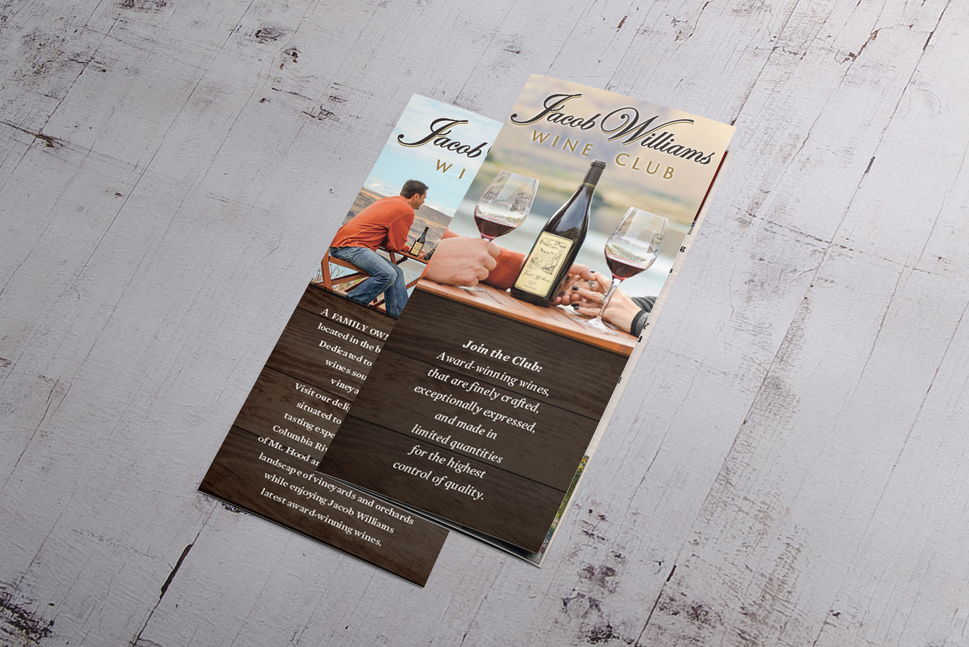 I was the graphic designer for Jacob Williams business cards and the project manager for the tasting room rack card and the wine club brochure.